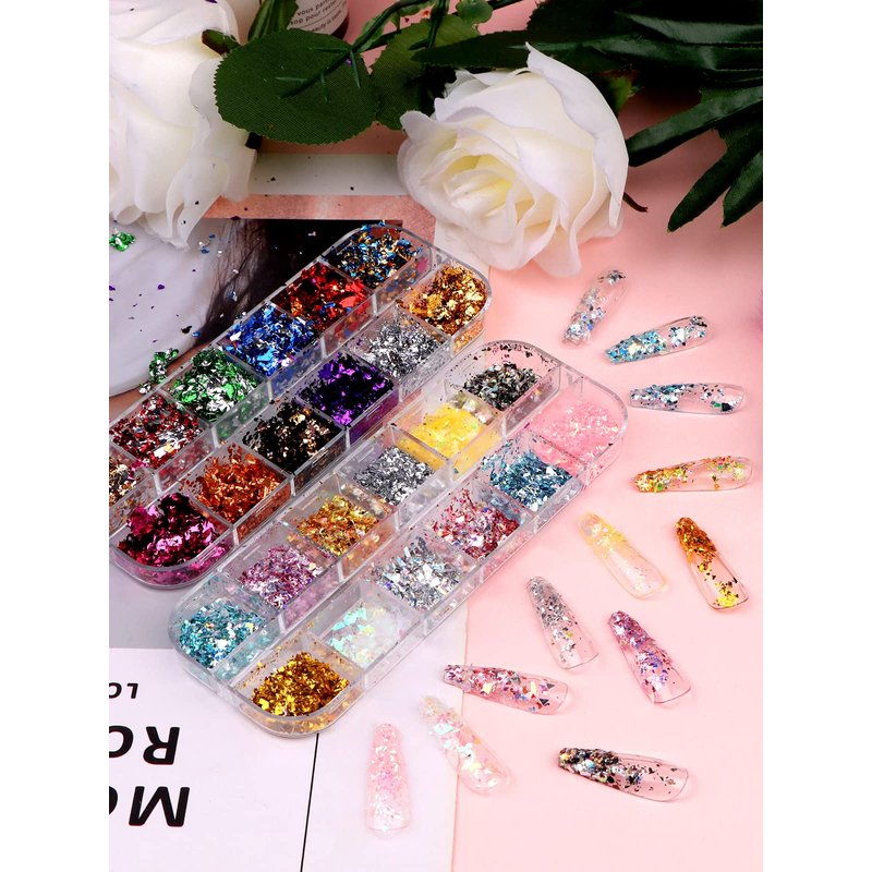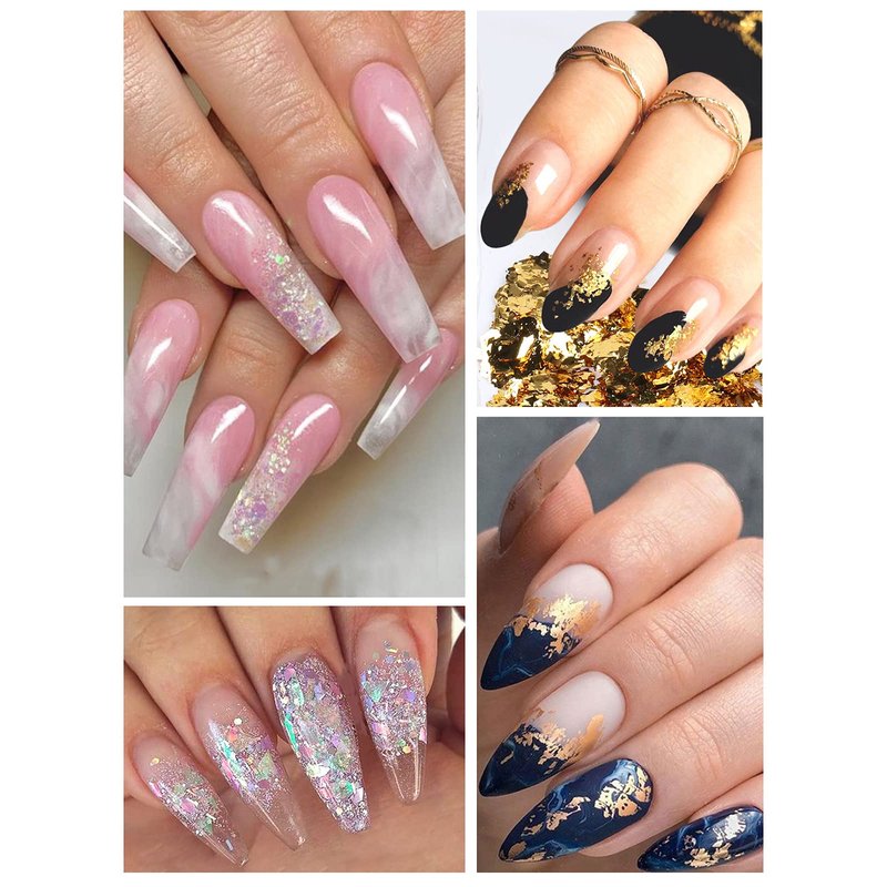 - Shiny Nail Art Decoration: These foil nail chips have a holographic shiny surface with bright colors, which can make your nail more attractive and charming.