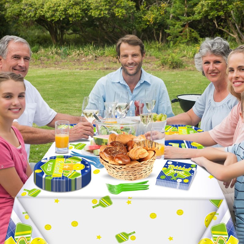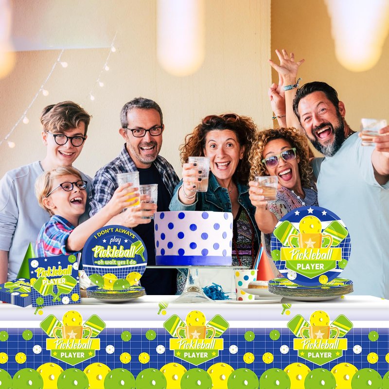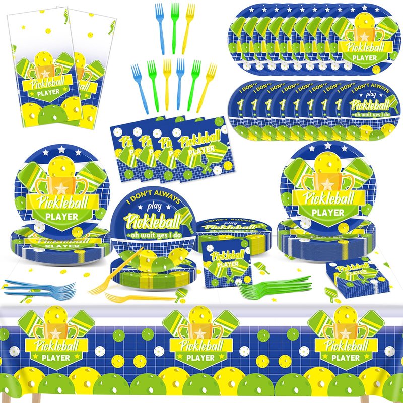 - Package includes: 24 pcs of 9in pickleball party paper plates, 24 pcs of 7in pickleball player themed plates, 24 pcs of 6.5in party napkin, 24 pcs of plastic forks and 2 pcs of pickleball tablecloths.