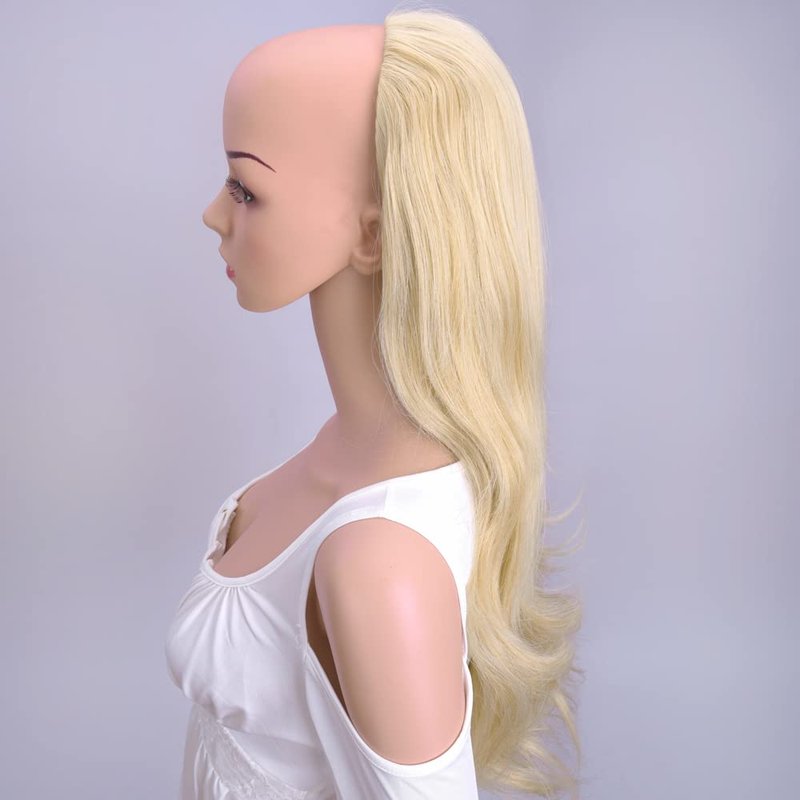 24 Inch Blond Wavy 3/4 Half Wig Long lightest Synthetic Hair Extensions Capless Wigs Hair Clips Extension For Women 210g(24“ #4)