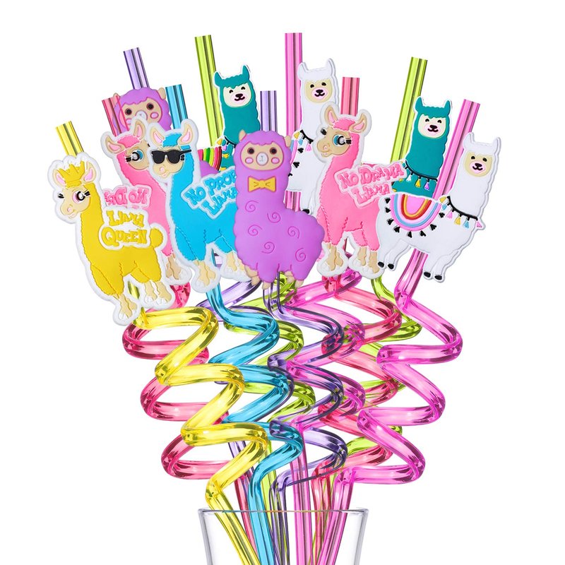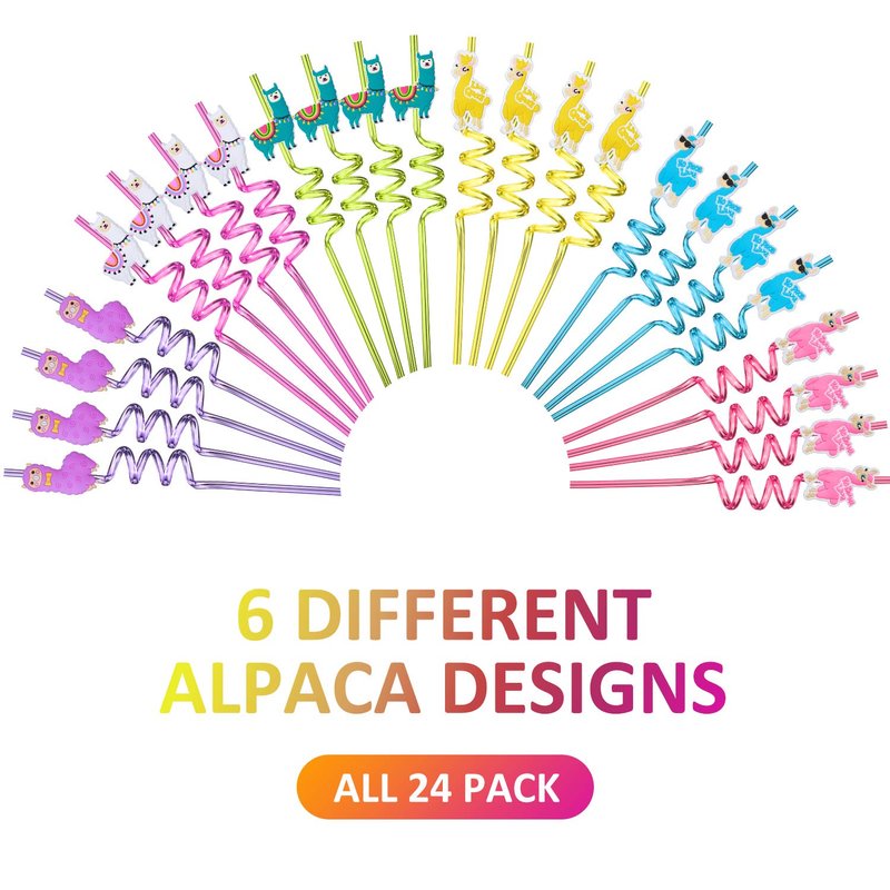 - Huge Hit for The Party Favors - INCLUDES 24 crazy loop reusable plastic drinking straws with 24 LLama Characters + 2 cleaning brush,Great for birthday or baby shower as party favors in the goodie bags. Kids of all ages love them, especially kids aged 3 to 10 years old.