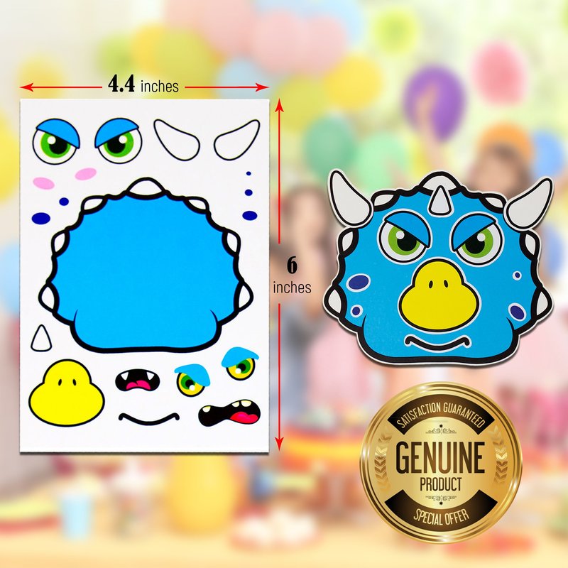 24 Make A Dinosaur Stickers for Kids - Great Dino Theme Birthday Party Favors - Fun Craft Project for Children 3+ - Let Your Kids Get Creative & Design Their Favorite Dinosaur Sticker