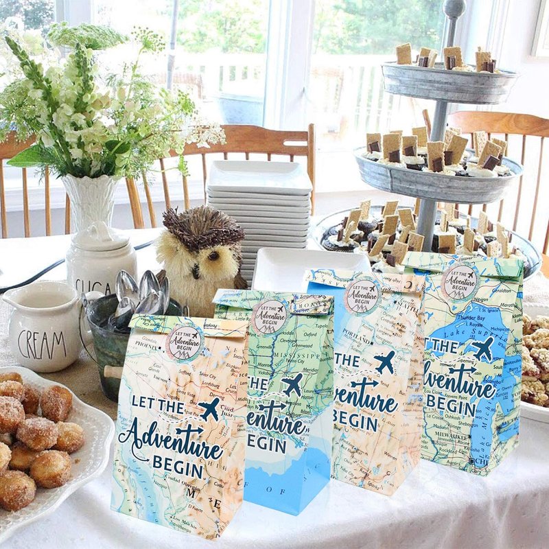 24 Pack Adventure Themed Party Favor Bags Let the Adventure Begins Gift Bags Adventure Awaits Bon Voyage Travel Farewell Themed Party Treat Bags Travel Themed Birthday Baby Shower Party Supplies