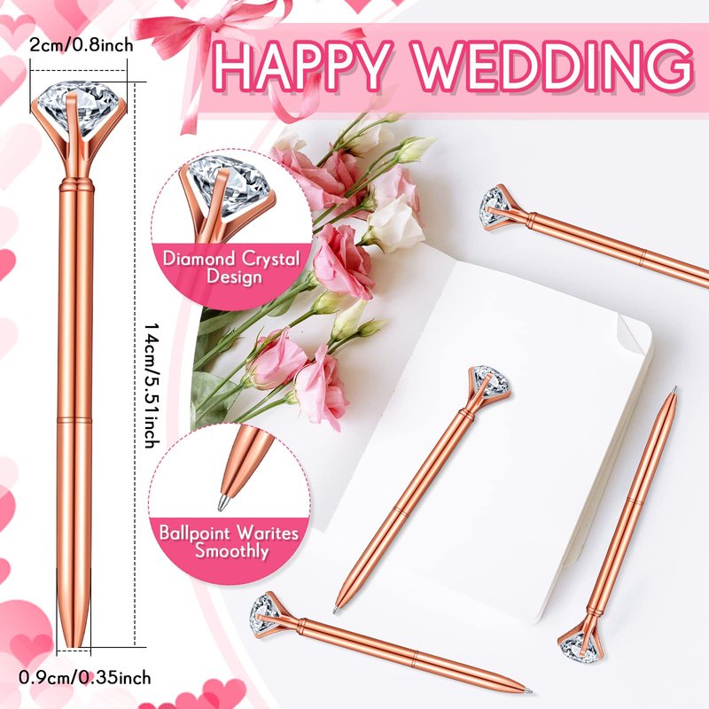 - Diamond Pens: the pens come in metallic colors with a large acrylic diamond shaped top and plated in rose gold color, making them look delicate and eye catching; Smooth polished surfaces bring you a comfortable grip and fluent writing gives you a nice user experience, convenient for your daily use; The beautiful diamond adds elegance and color to fit your bridesmaid proposal box