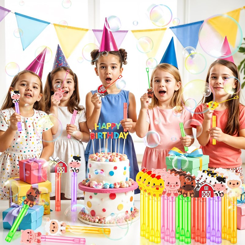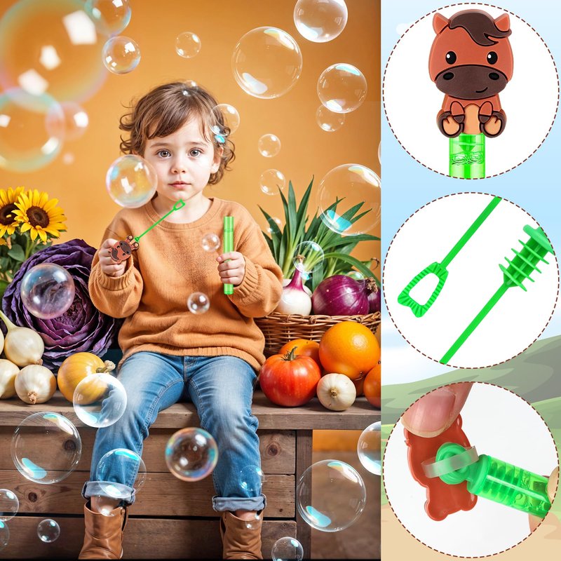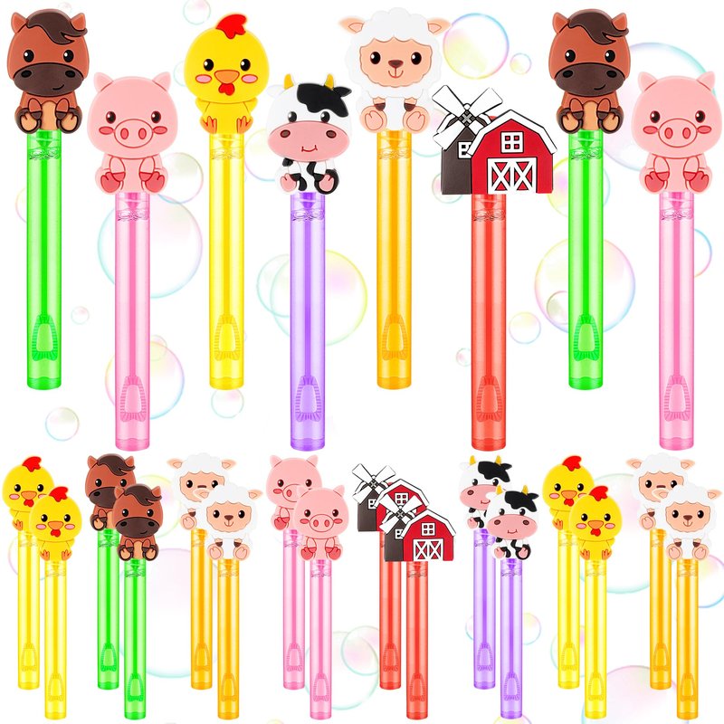 - Adorable Farm Animals: This set features 6 charming bubble wands shaped like popular farm animals - a sheep, horse, cow, pig, chick, and barn.