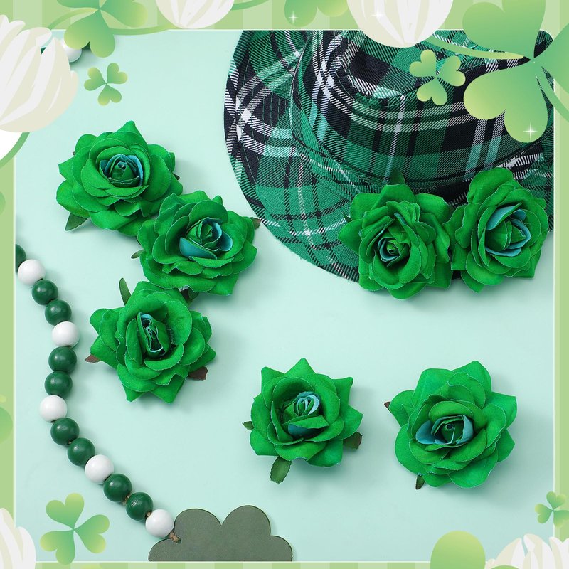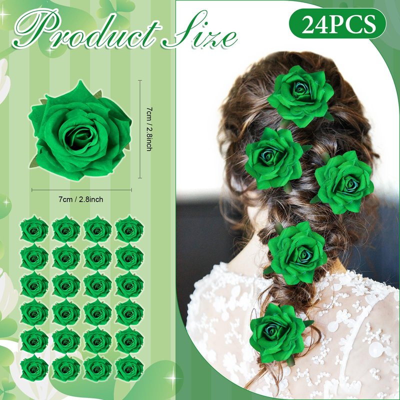 24 Pack St Patricks Day Hair Clip Rose Flower Hairpin Floral Brooch for Party Supplies Wedding Pack for Women Girls Rose Hair Accessories Boho Flower Pins(Green)