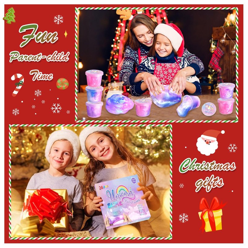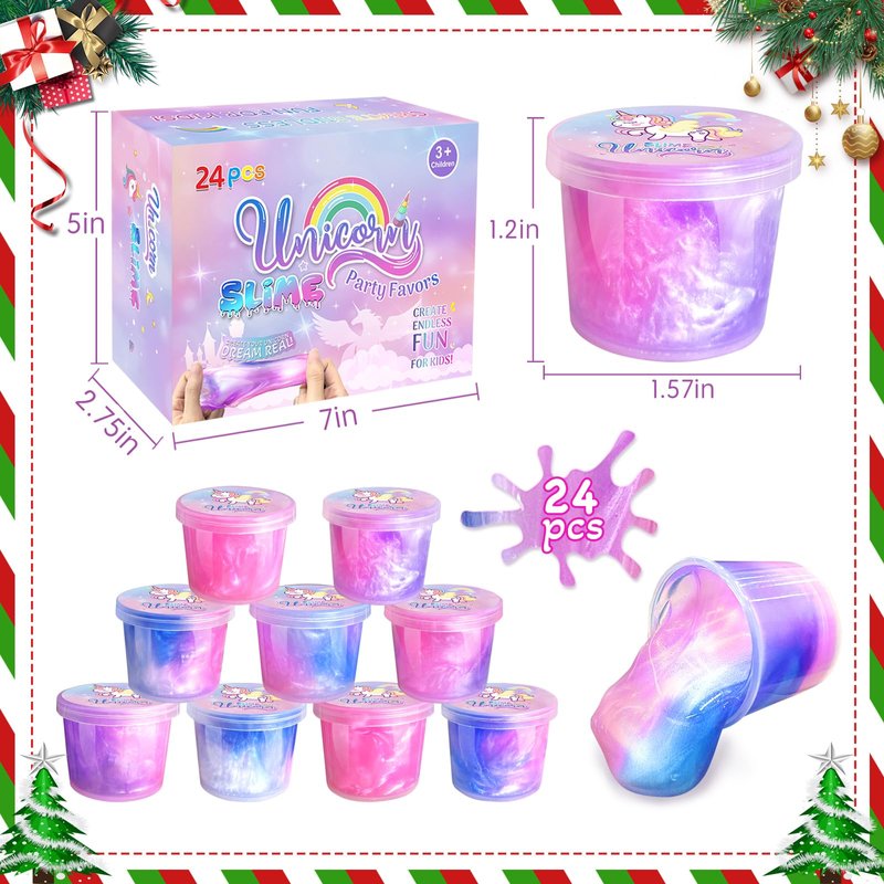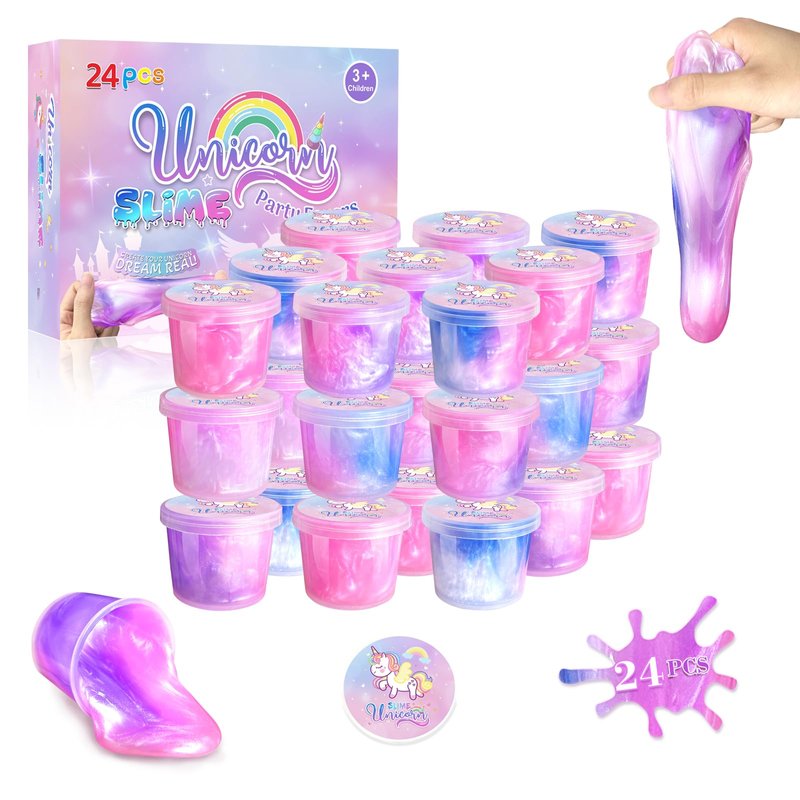 24 Pack Unicorn Slime Party Favors for Kids Slime Cup Bulk DIY Stress Relief Putty Toy Stretchy & Non-Sticky Christmas Easter Birthday Goodie Bag Stuffer Classroom Reward for Girls Boys