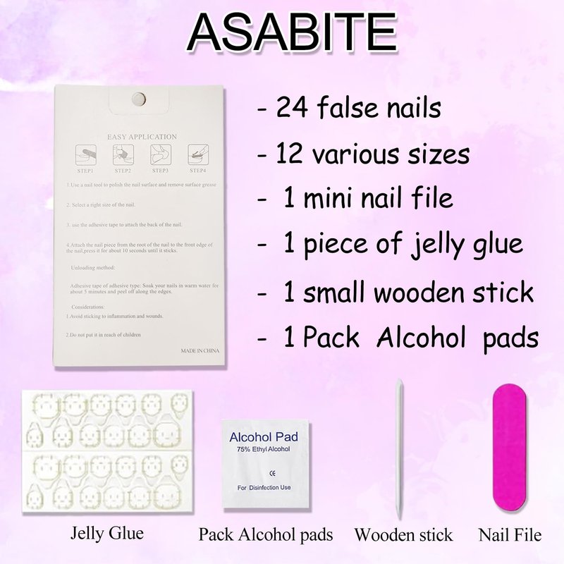- š¤ćEasy to UsećFirst, trim and clean your natural nails, choose the appropriate size of fake nails, and use tape to press the glue on nails on the nails for 10-15 seconds. After completion, soak the nails in water for about 1-2 minutes to make removal easier.