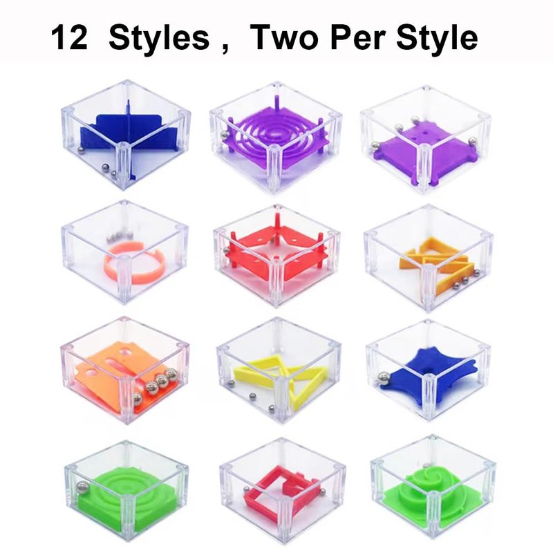 24 Pcs Balance IQ Maze Game,Mini Maze Cube Puzzle Box 3D Brain Maze Toy Puzzles Party Favor Games, Ideal Prizes Gifts for Kids and Adults