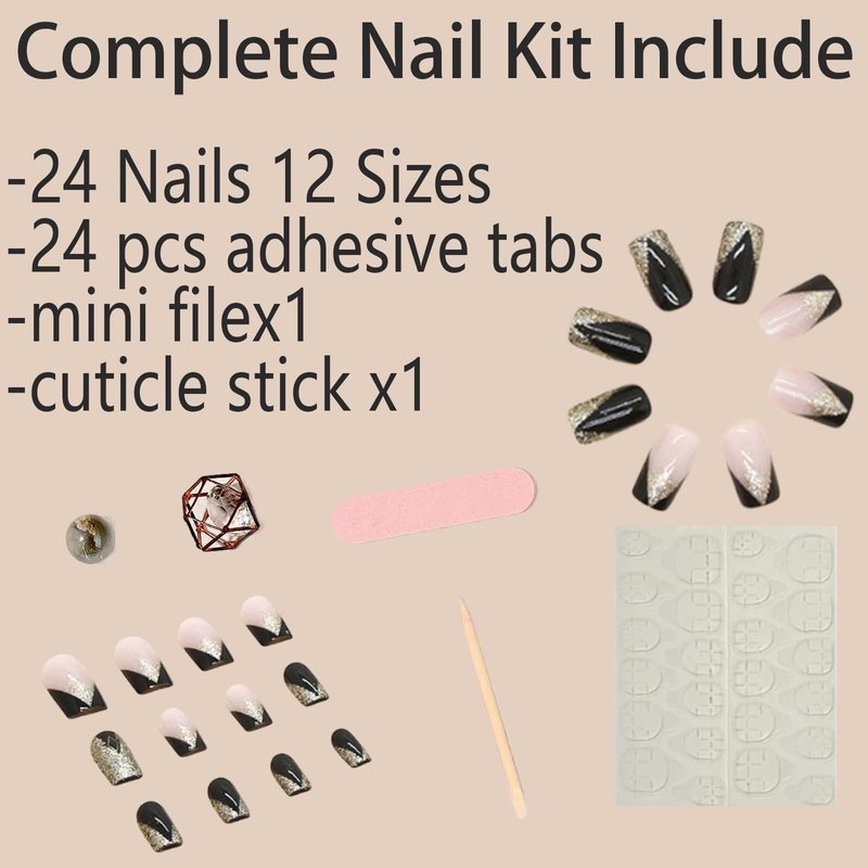- Easy to use:Just choose the black nail piece that suits you, polish the nail bed, paste the jelly glue we give you, and then press the nail for 30 seconds to get your favorite fashion style nail. Due to the limited use of jelly glue, we suggest you use your own glue.