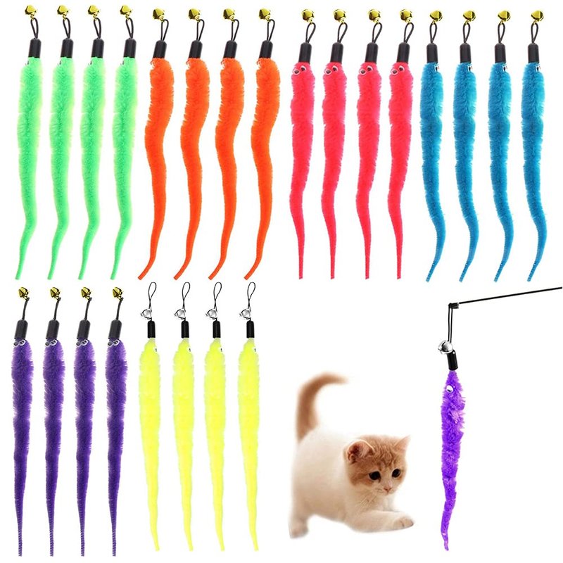 24 PCS Cat Worm Toy Refills Cat Wand Toy Replacement Interactive Cat Wand Toy Accessories Cat Feather Worm Teaser Refills Attachment for Cat Fishing Pole Toy Worm Cat Toy Teaser for Indoor Cats Kitten