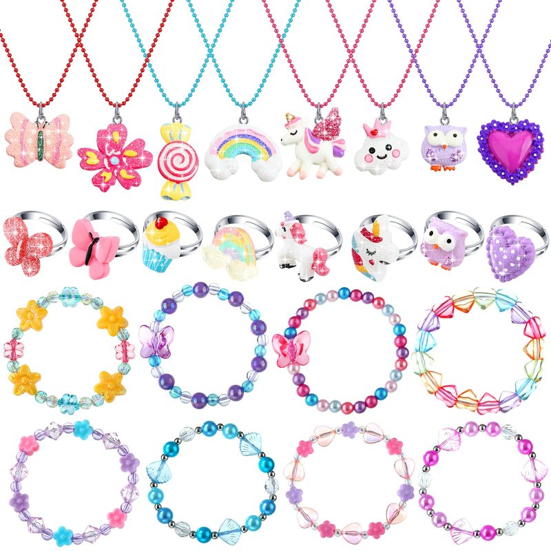 - Exquisite appearance: this cute jewelry set adopt various elements that cater to girls' tastes, such as unicorns, unicorns, owls, candy, butterflies, flowers, hearts, clouds, shells, rainbow and more, which can add an adorable and elegant temperament