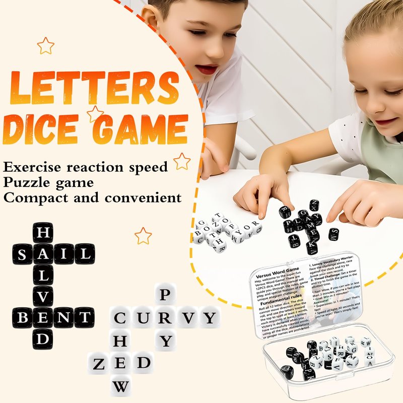 - Dice Material Quality:The crossword puzzle double player game is made of high quality Acrylic material, hand-polished corners prevent chipping or splitting during use, and each dice has six unique patterns,stimulating creativity and language organization skills