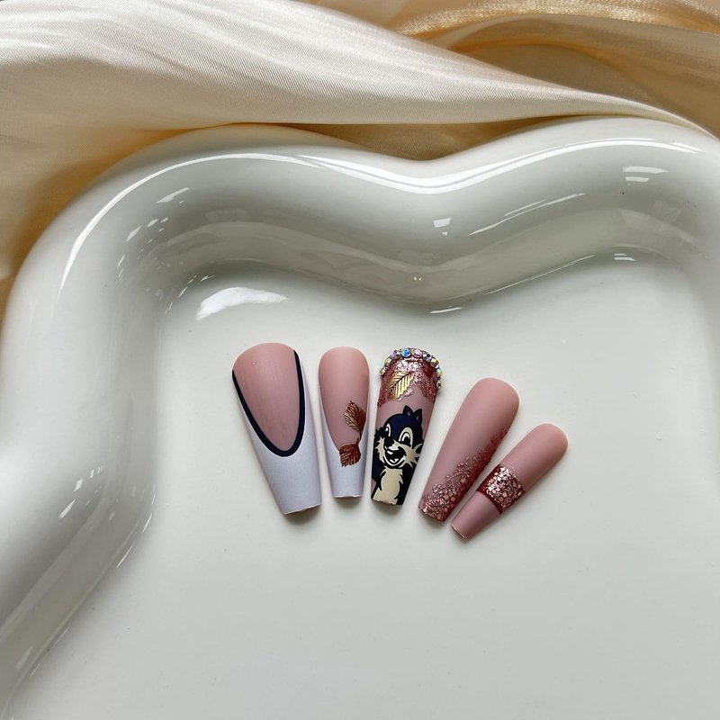 24 Pcs Fall Winter Press on Nails Long Ballerina Fake Nails with Design Cute Squirrel French Full Cover False Nails Autumn Thanksgiving Stick on Nails Acrylic Glue on Nails Matte Nails for Women Girls