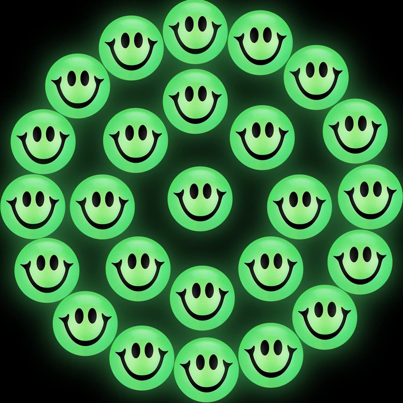 24 x Glow in the dark smile face bouncing balls