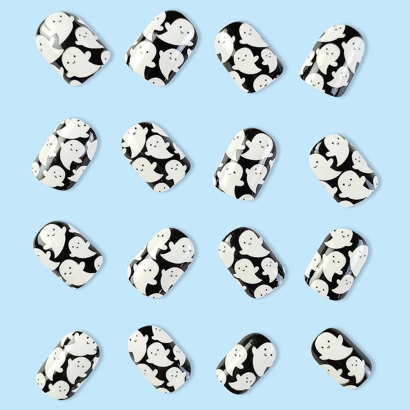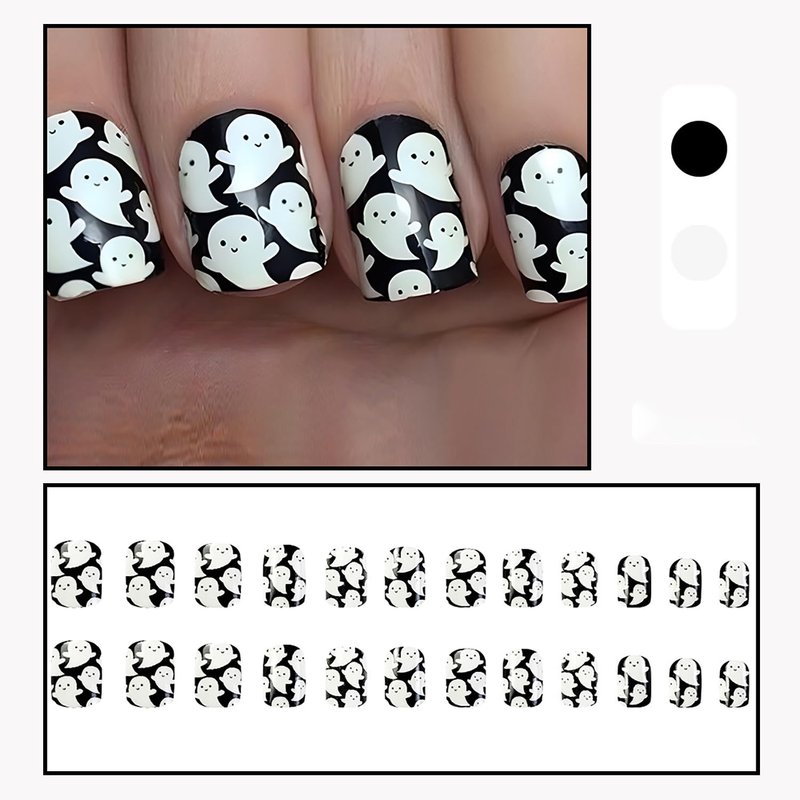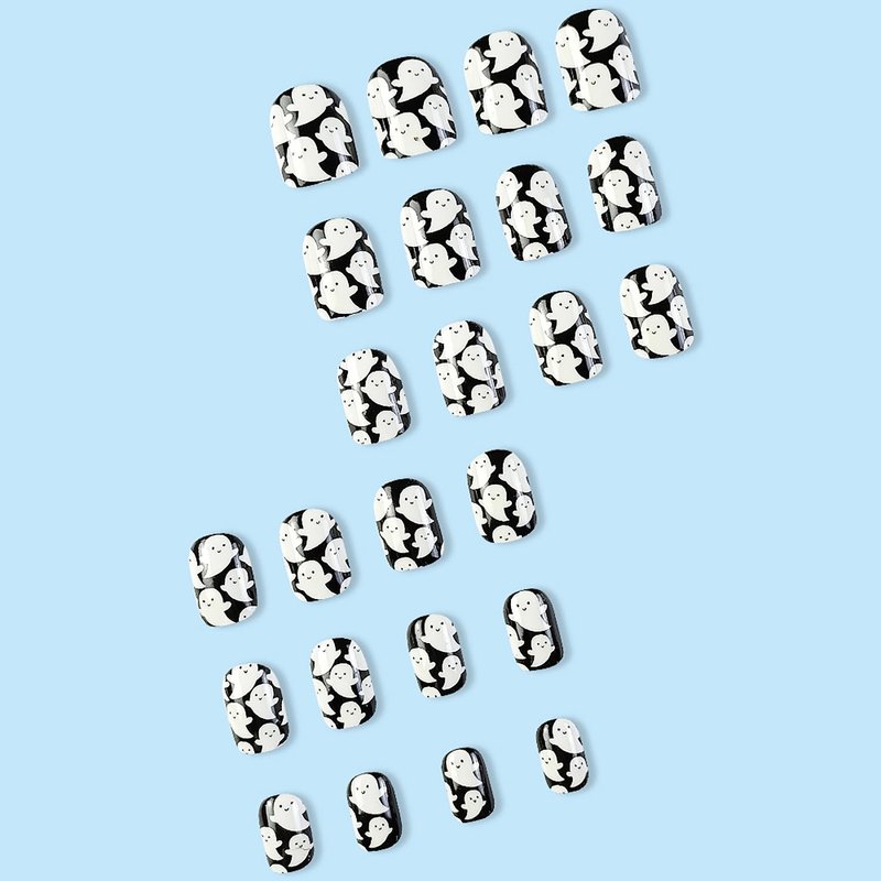 - 🎃【Halloween Design】Unique Halloween elements are displayed on these Halloween press on nails, the white ghost face pattern is so cute. It's a Halloween exclusive design.