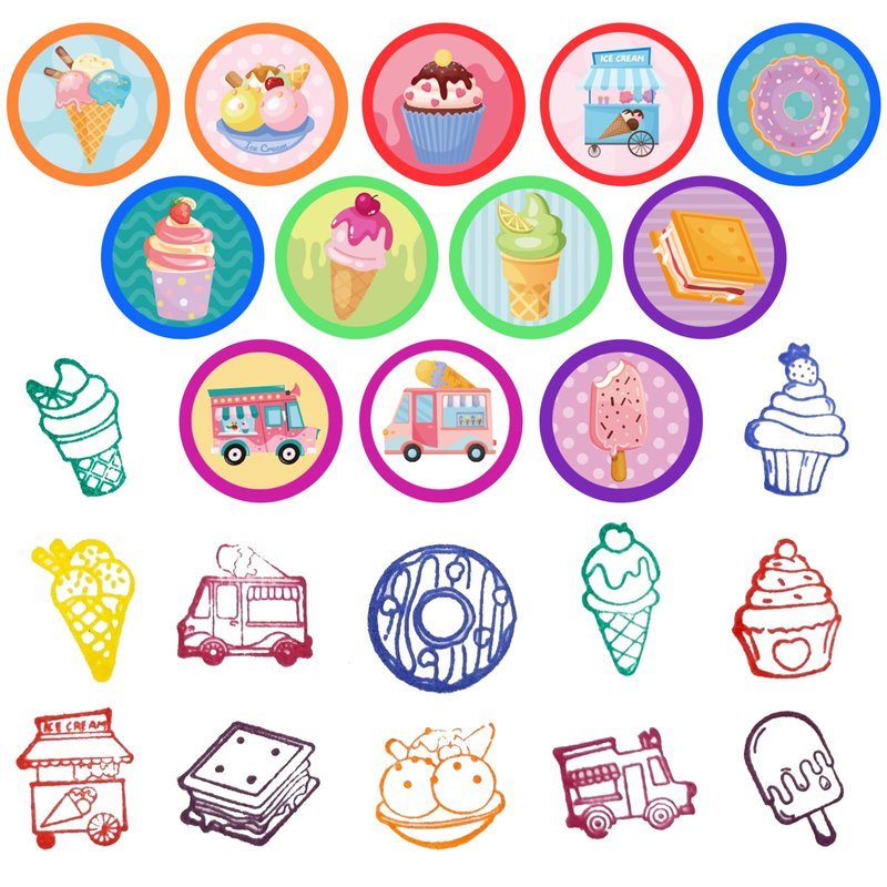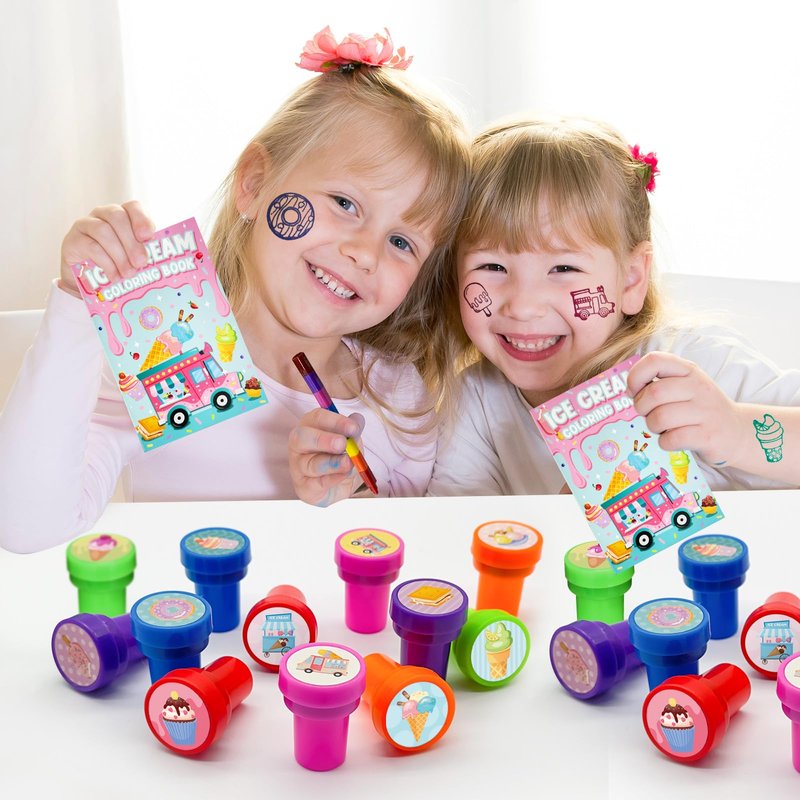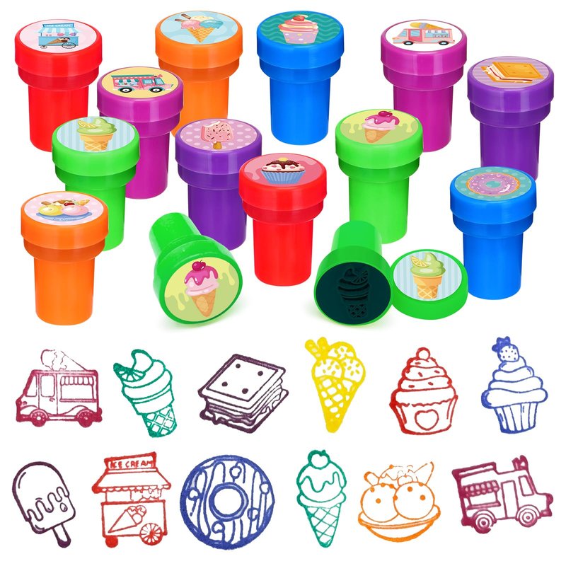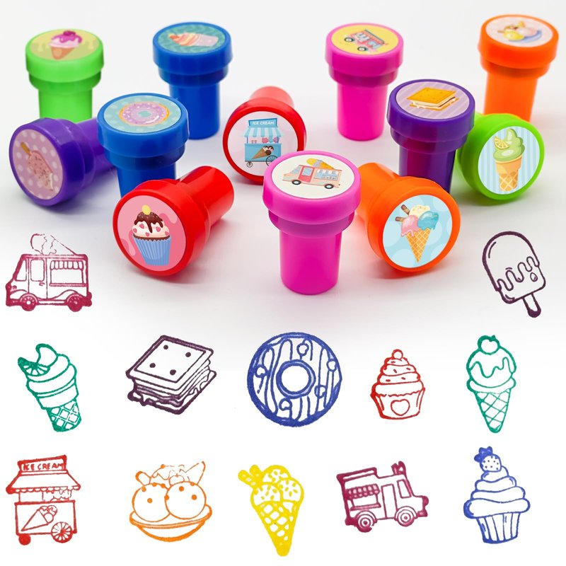 - Endless Fun:This ice cream mini stamps set creates joy and excitement for gifts. An excellent classic educational that provides hours of hands-on, screen-free play and learning. Great for party favor, teacher's classrooms, birthday party, school & classroom prizes, carnival prizes, stationery, greeting cards, scrapbooks design, and all other uses.
