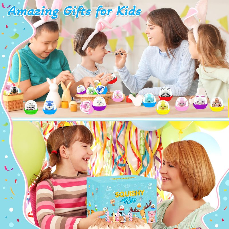 24 Pcs Party Favors Filled Squishy Toys Slow Rising Squishies Toys Easter Eggs Kawaii Animal Stress Relief Toys for Kids Boys Girls Birthday Easter Goody Bags Class Prizes Pinata Fillers