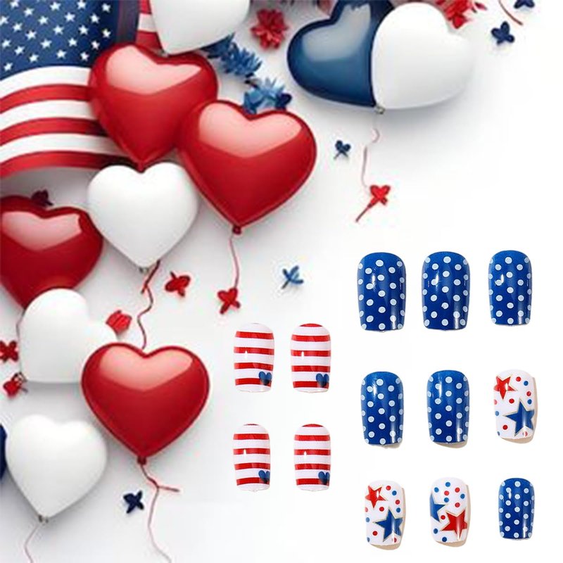 - Independence Day Style Designs: Calling all who love America,these 4 of July false nails are made for Independence Day, Provide a special festive atmosphere for Independence Day,It is an ideal choice to showcase your unique taste and personality.