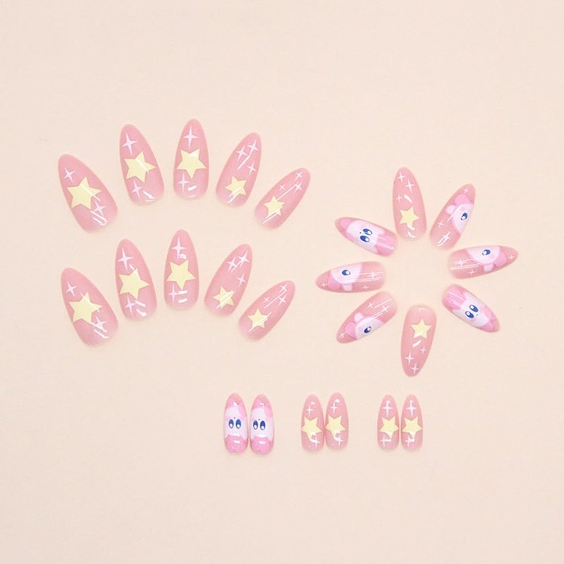 24 Pcs Pink Press on Nails Almond Medium Kawaii Cute Fake Nails Press ons Fashion Nail Tips Full Cover False Nails with Designs Stick on Nails Glue on Nails Acrylic Nail Kit Art for Women Manicure