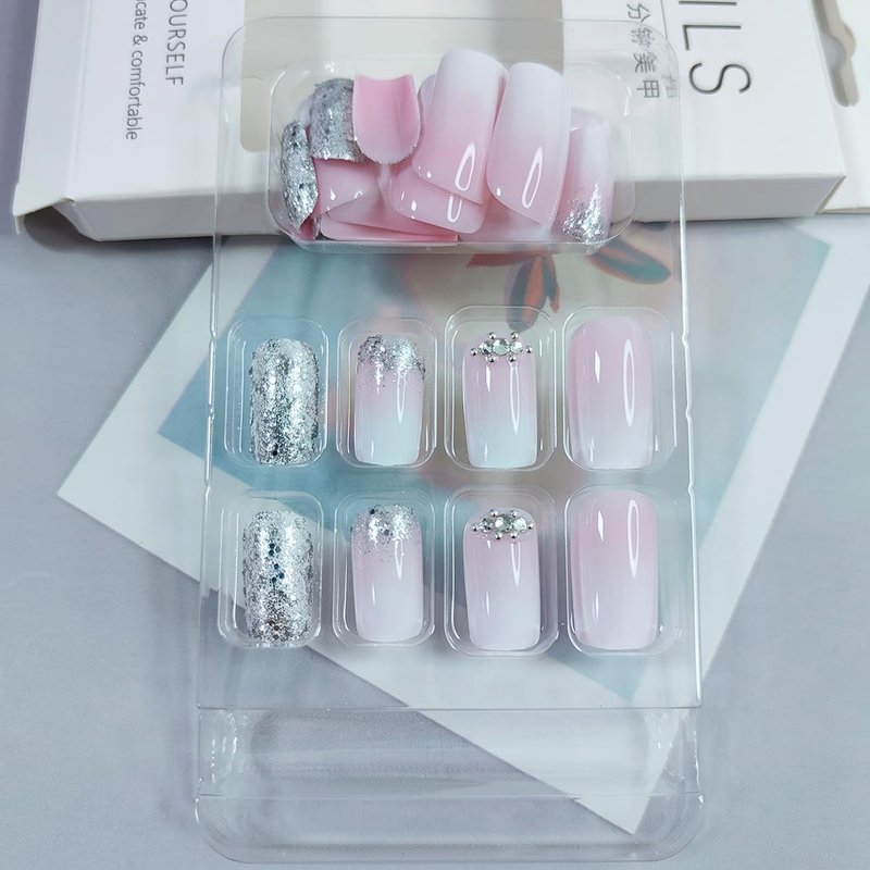 - Material: Silvery white fake nails are made of acrylic material, these fake nails can be reused. You can use it with confidence