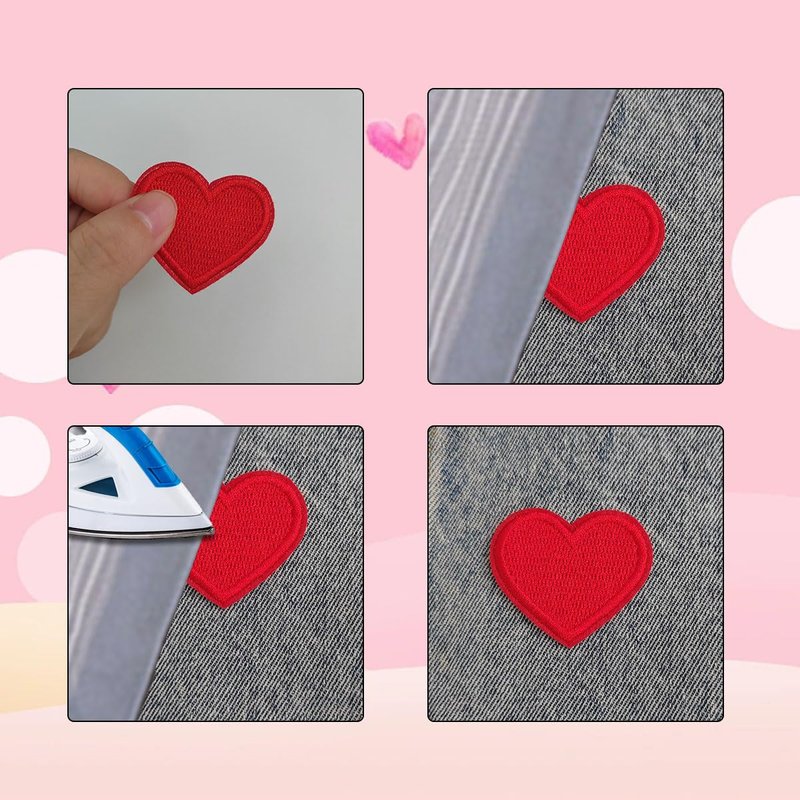 - Easy to use: Tiny red heart patches are simple to use.First, place the heart patch in the desired position then cover with cloth on the patch. Set iron to "COTTON", Iron with temperature of 150℃ for about 15-30s seconds. Last,Turn the clothes over and iron them again then let it cool down for 1 hours before use. If the iron on method not work well, consider sewing them on. (red heart patches sew on has hot melt adhesive on the back, so it takes a little time to iron or sew on any garment.)