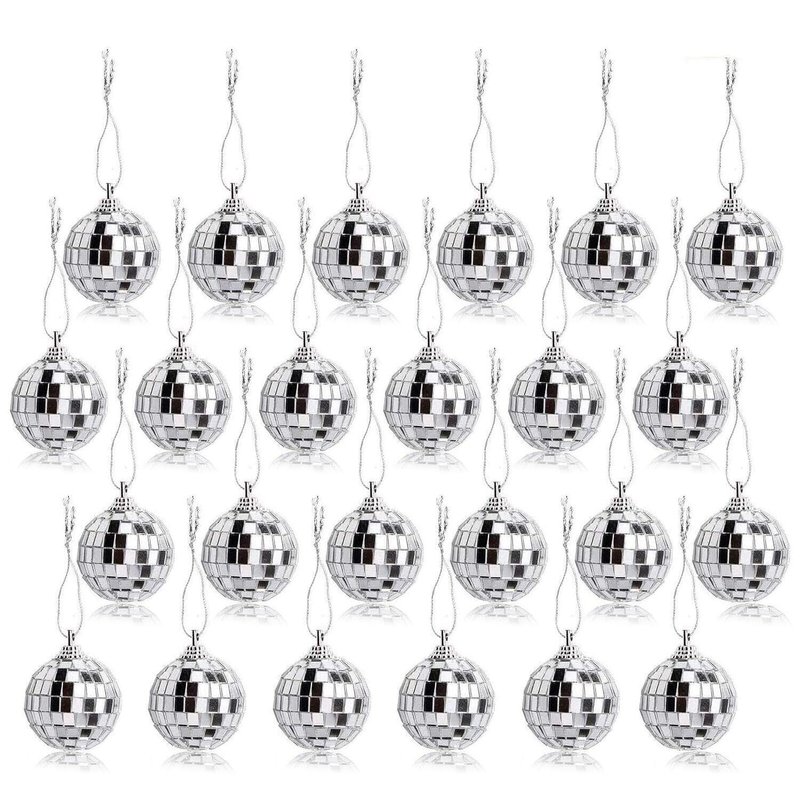 24 Pcs Silver Disco Mirror Ball for Party Decoration, Christmas Tree Wedding Birthday Party Ornaments(4CM)