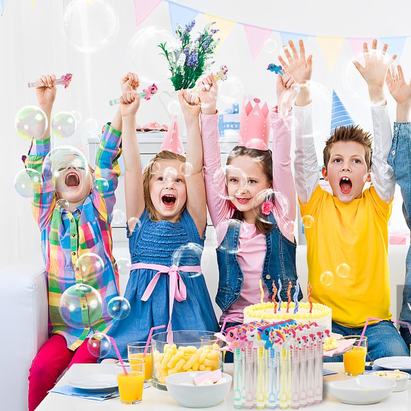 - Unicorn Party Supplies - Includes 24 Piece bubble wand for kids(6 different colors),Great for party favors in the goodie bags. Kids of all ages love them, especially aged 3 to 10 years old.