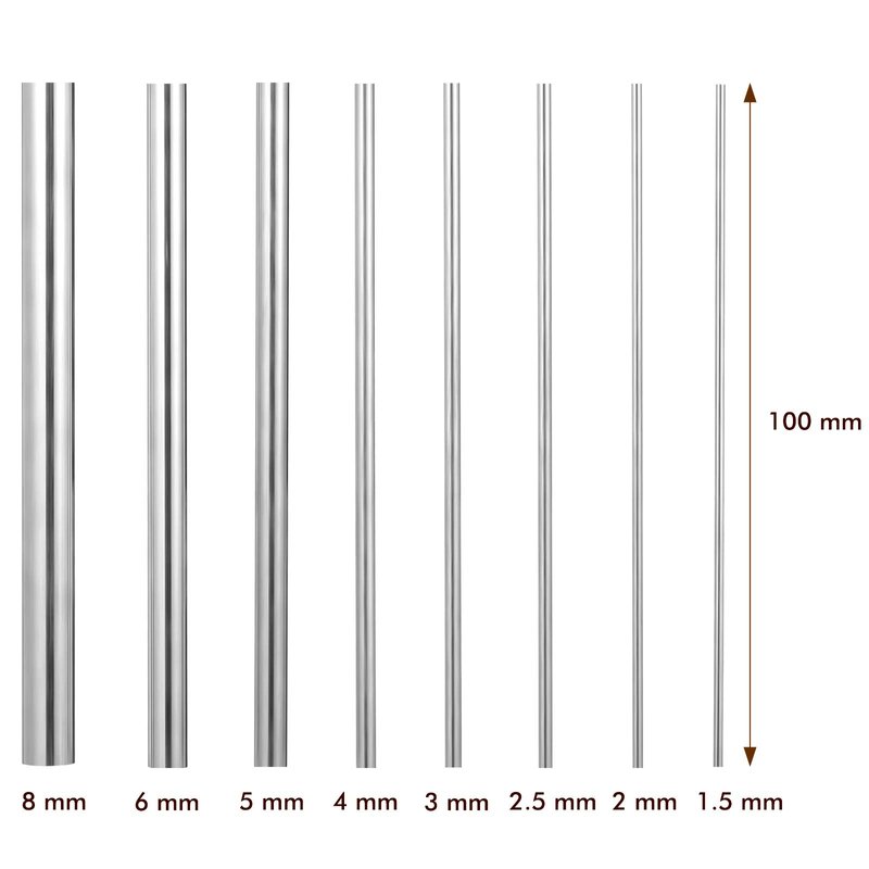 - What you get: you will get 1 piece 8 x 100 mm stainless steel rod, 2 pieces for 6 x 100 mm, 3 pieces for 5 x 100 mm, 3 pieces for 4 x 100 mm, 6 pieces for 3 x 100 mm, 3 pieces for 2.5 x 100 mm, 3 pieces for 2 x 100 mm and 3 pieces for 1.5 x 100 mm