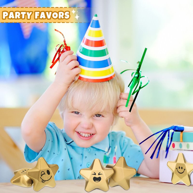 24 Pieces 3.1 Inch Star Stress Balls Gold Star Mini Foam Ball Star Stress Toys Bulk Stress Relief Gifts for Coworkers Adult Goodie Bag Stuffers Teen Party Favors School Office Award (Smile Face)