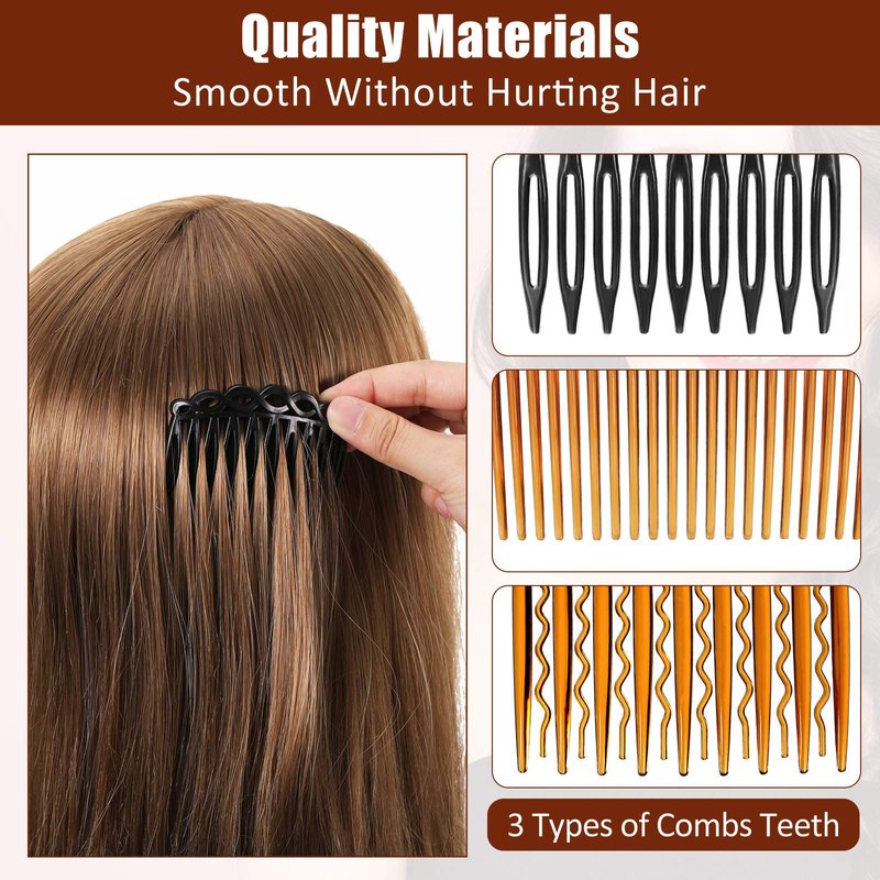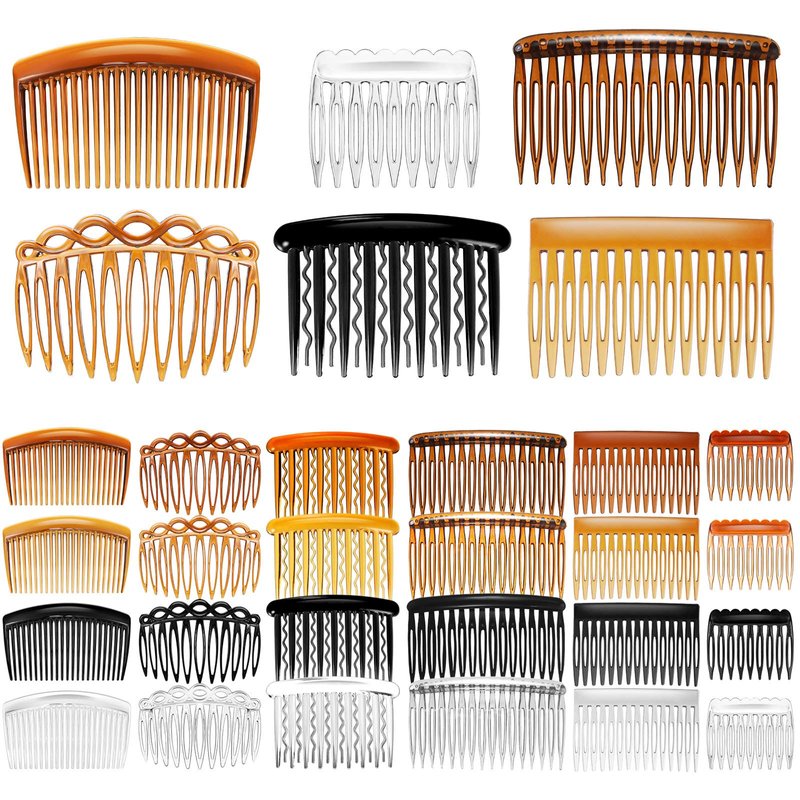 - Package includes: you will receive 24 pieces side hair combs in 6 size with 9/11/15/16/17/23 teeth, 4 colors for each style including dark brown, light brown, transparent and black, 24 pieces of hair combs in total, abundant quantity can match most hairstyles
