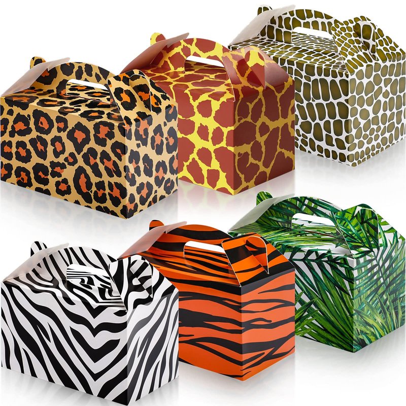 - Proper size: each of the animal print favor boxes measures 6 x 3.5 x 3.5 inches, with enough space for you to hold things inside, and as long as the boxes are held evenly, items inside will not mess up easily