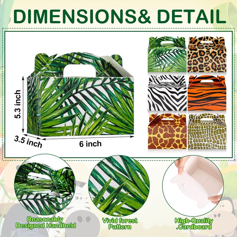 - Widely Application: the jungle favor boxes can be applied to holding party sweets, cookies, snacks, candy, party supplies, etc., which can also be applied as safari gift packaging boxes, holiday gift packaging boxes