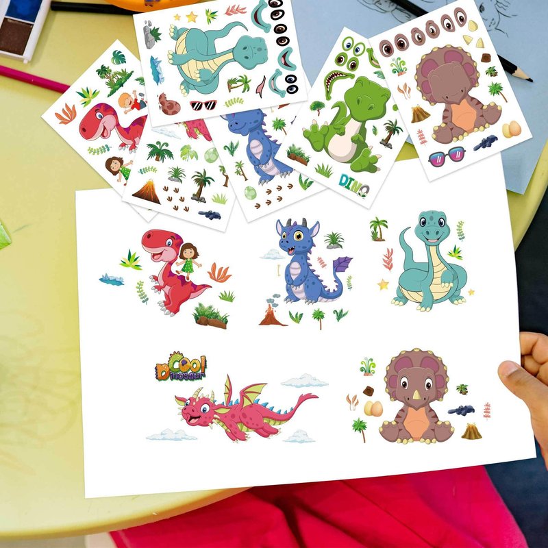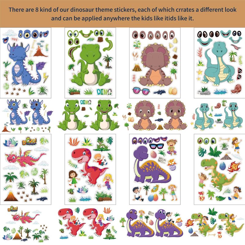 - Super Value Pack: You will receive 24 sheets Make Your Own Dinosaur Stickers in 8 different styles. 8.27''×5.9'' per sheet. Large size makes it easier for kids to operate.