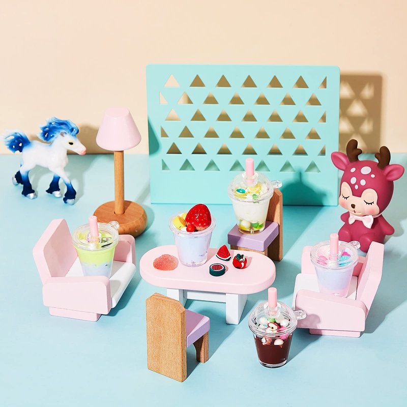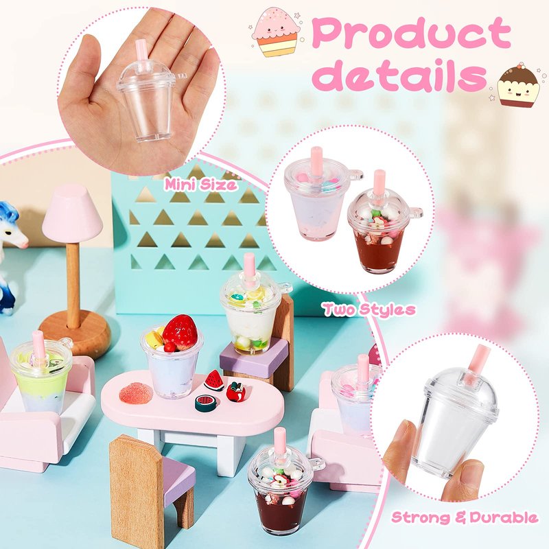- Cute design: these miniature coffee cups have a transparent appearance and each one is equipped with a pink straw, easy to see inside clearly, allowing you to put doll food inside for a nice visual effect; You can also paste adorable stickers or paint something you like on the cup to DIY your dollhouse furniture