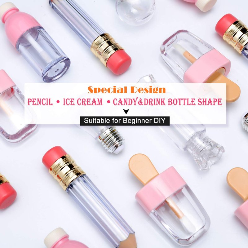 - Adorable and novelty: the refillable lip balm containers feature in pencil shape, lollipop shape, ice cream shape, light bulb shape, candy shape and bottle shape, which are creative and interesting; Empty tubes with cap and brush tip, allow you to put them in your bag without worrying about leaking