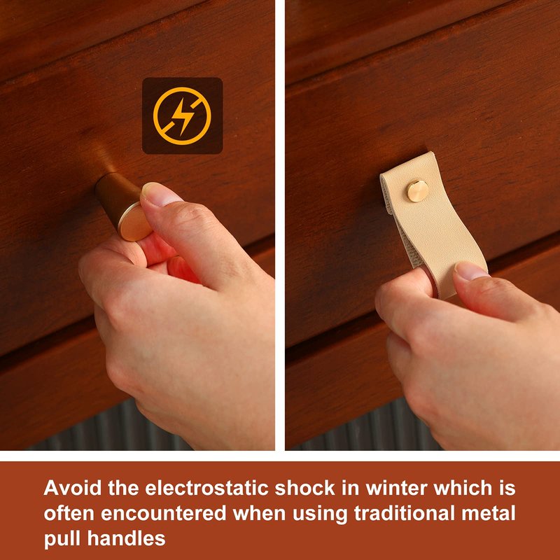 - Safer than steel knobs: this small PVC leather drawer pull is soft and flexible that it can provide you with a safer home wardrobe furniture pulls for children; Moreover, the PVC leather handles can avoid the electrostatic shock in winter which is often encountered when using traditional metal pull handles