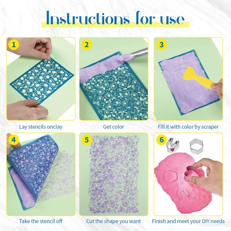 - Proper Size Fits Most: the size of the clay stencil is about 3.9 x 6 inches, the large squeegee is about 3.7 x 4.3 inches, the small squeegee is about 2 x 5 inches, you can choose the one that fits your need to use