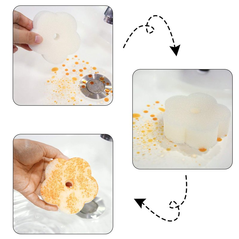 - Large quantity: package includes 24 packs oil absorbing sponges, flower shape design, nice absorbent, large quantity, nice for kitchen, swimming pool, etc.; Note: the sponge can be as well as original after absorbing water