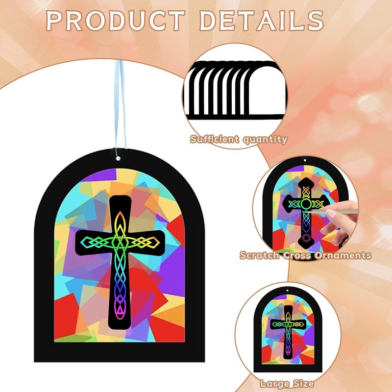 - 🎨【Enjoy DIY Cross Religious Crafts Fun】The scratch cross ornaments has a special scratch design, children can use wooden sticks to diy their favorite patterns at any time and anywhere, which helps to stimulate children's imagination and creativity; When you draw with sticks, the cross cardstock can have a colorful base color, which can make your cross cardstock more dynamic and attractive.
