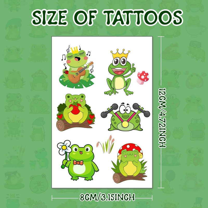 - 【High Quality Materials】These frog temporary tattoos are mainly made of quality cardboard and plastic film, durable and reliable, secure and friendly, which can directly touch your skin without any discomfort; And they have a good stickiness so that they are not easy to fall off.