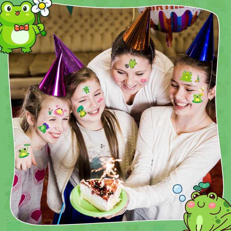 24 Sheets 144 PCS Frog Temporary Tattoos Stickers, Frog Party Favors Birthday Decorations Supplies Gifts for Kids Boys Girls Classroom Rewards