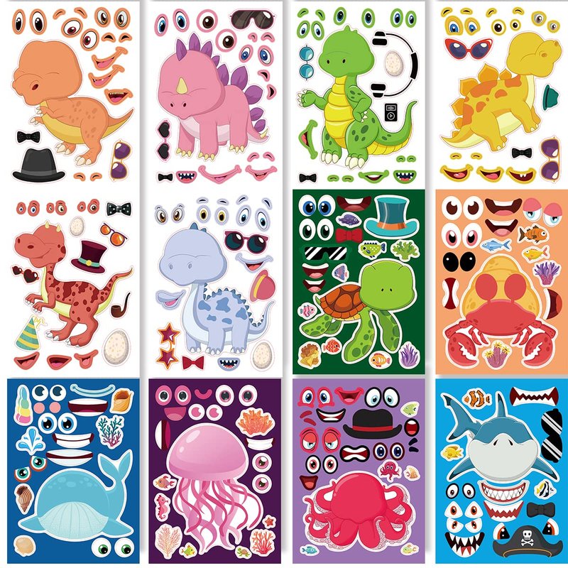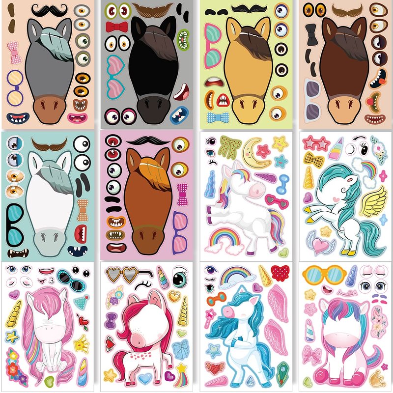 24 Sheets 8.27''×5.9'' Make Your Own Stickers for Kids Toddlers, Make a Face Stickers Mix and Match with Unicorn Dinosaur Horse and Sea Animals for Kids Party Favors Activities