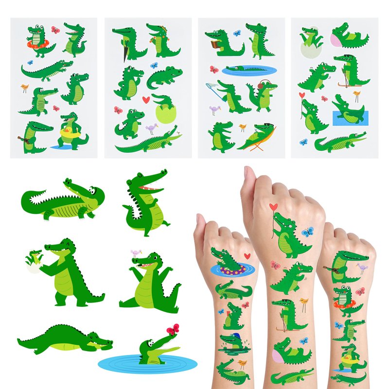 24 Sheets Crocodile Alligator Temporary Tattoos, Birthday Decorations Crocodile Alligator Party Favors