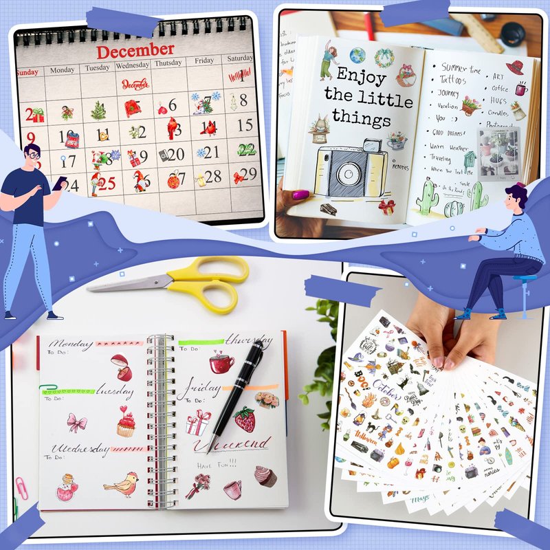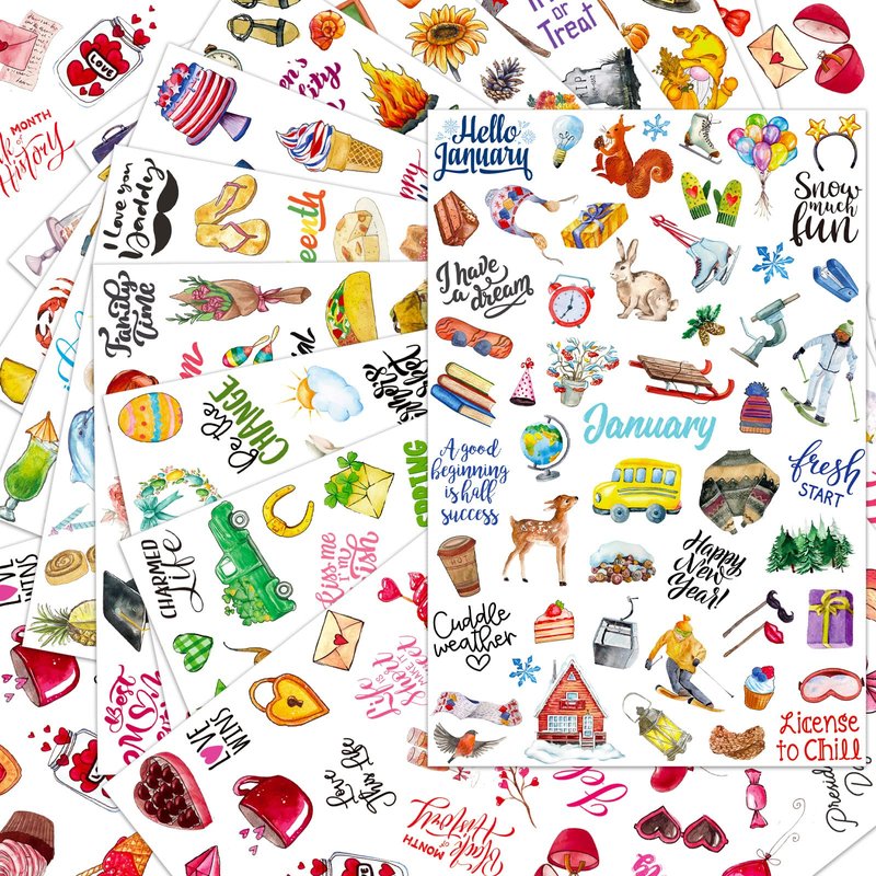 - Delicate Design: the daily planner stickers are designed with 12 months, use important holiday features, such as graduation Christmas and Halloween gift, adopt many cute patterns, such as food, clothing, transportation, etc.; Lovely colors and various designs can help you record your life well