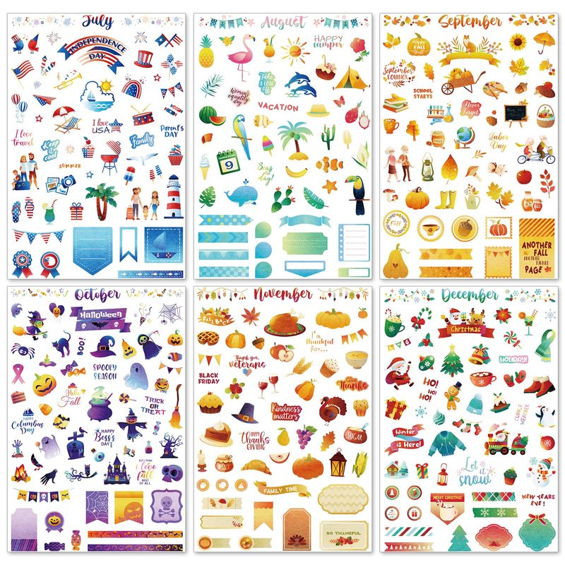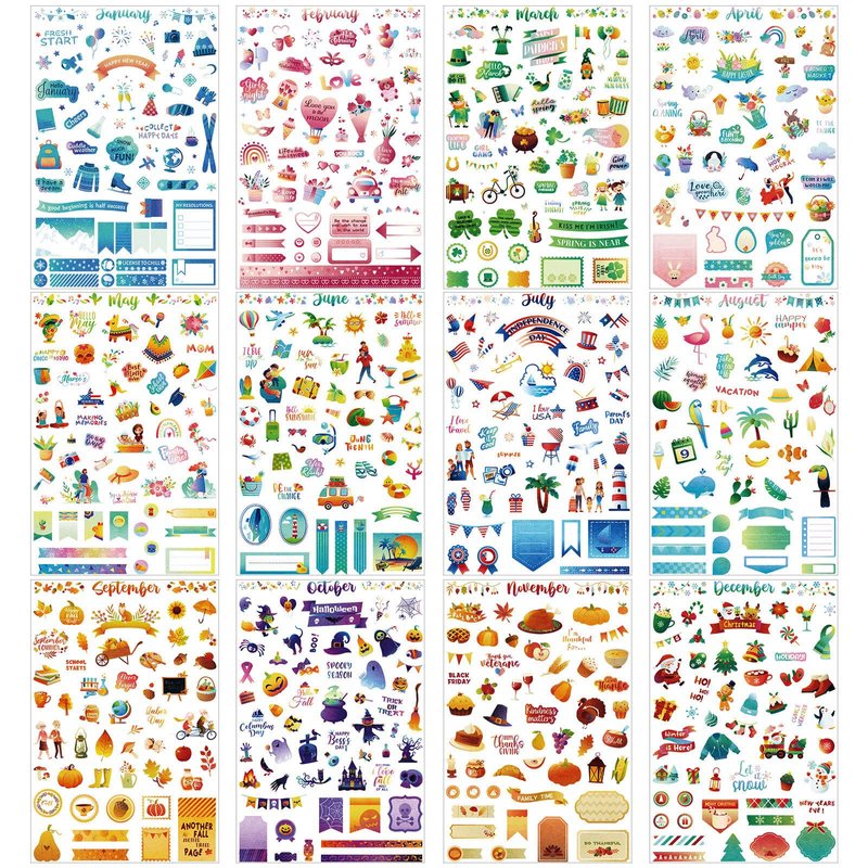 - Package Includes: you will receive 24 pieces of calendar stickers for adults planner, approx. 12 x 18 cm/ 4.72 x 7.09 inches in size, more than 1100 stickers in total, 12 colorful seasonal stickers, monthly themed with holiday and seasonal decorative stickers; You can decorate different days throughout the year, make your own layouts with a variety of beautiful calendar stickers to make your agenda more attractive