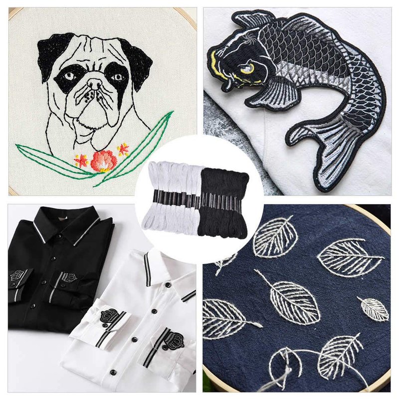 24 Pcs Black and White Embroidery Floss for Cross Stitch