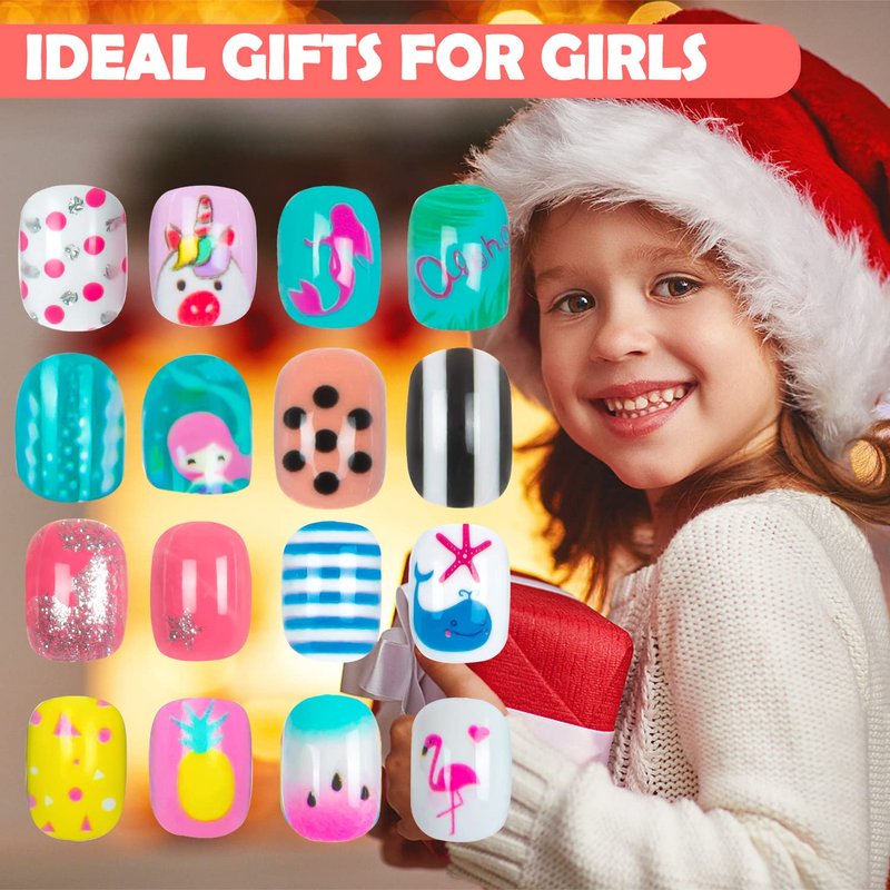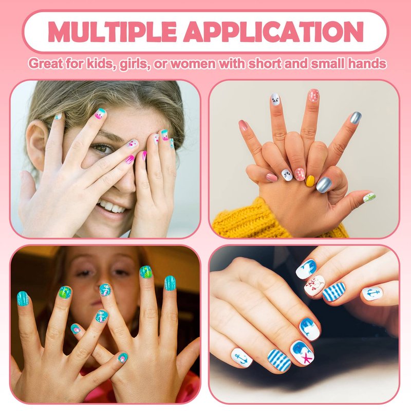 - MORE CONVENIENT PRE-GLUE DESIGN - Our fake nails for kids are pre-glued, which is very easy to apply. Simply select the fake nail that fits to your nail size and the patterns that you like, press the nails on natural nails to get the beautiful nail art. Kids can complete a cute nail art within a few minutes