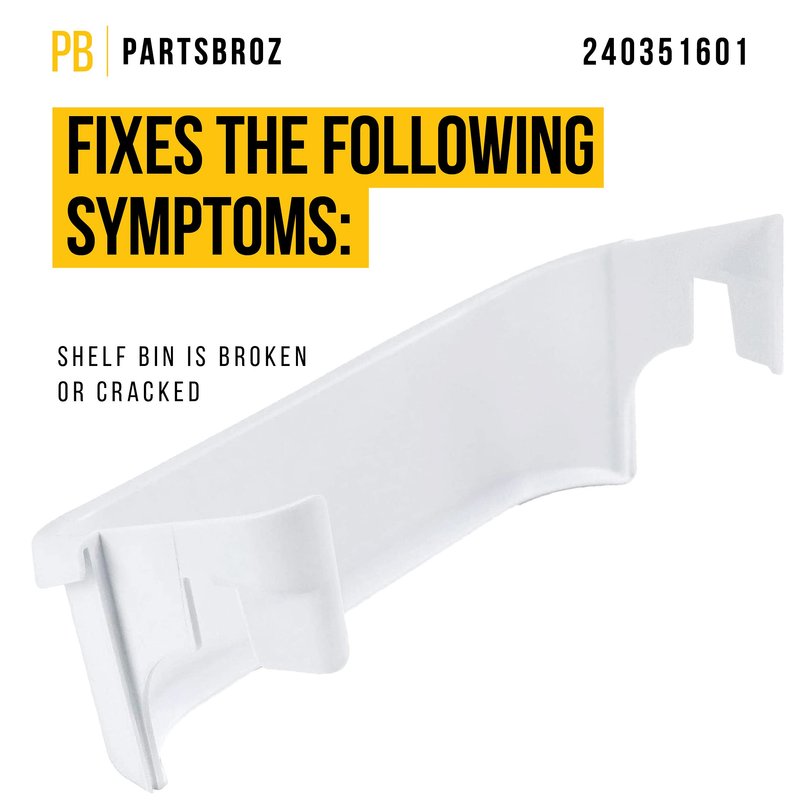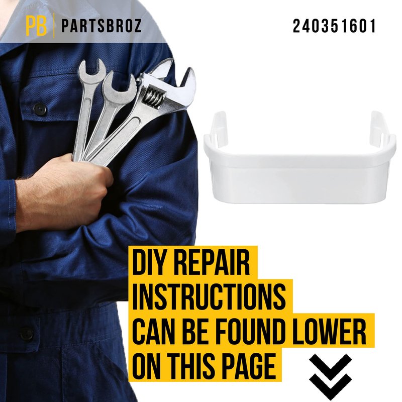 - 🔧 DIY eTips Included - Not sure how to replace the part? Helpful information can be found on the page below. Scroll down to get more repair tips. Acquire valuable skills during the DIY repair project. 240351601 Freezer Door Bin White For Frigidaire will help if your shelf bin is broken or cracked. Replacing a damaged or broken freezer door bin with the Lower 240351601 is a straightforward process that can be done without any special tools. You should simply snap the new door bin into place.