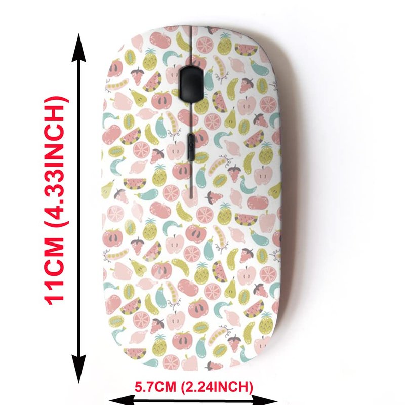 2.4G Wireless Mouse with Cute Pattern Design for All Laptops and Desktops with Nano Receiver - Vegan Flat Fruits