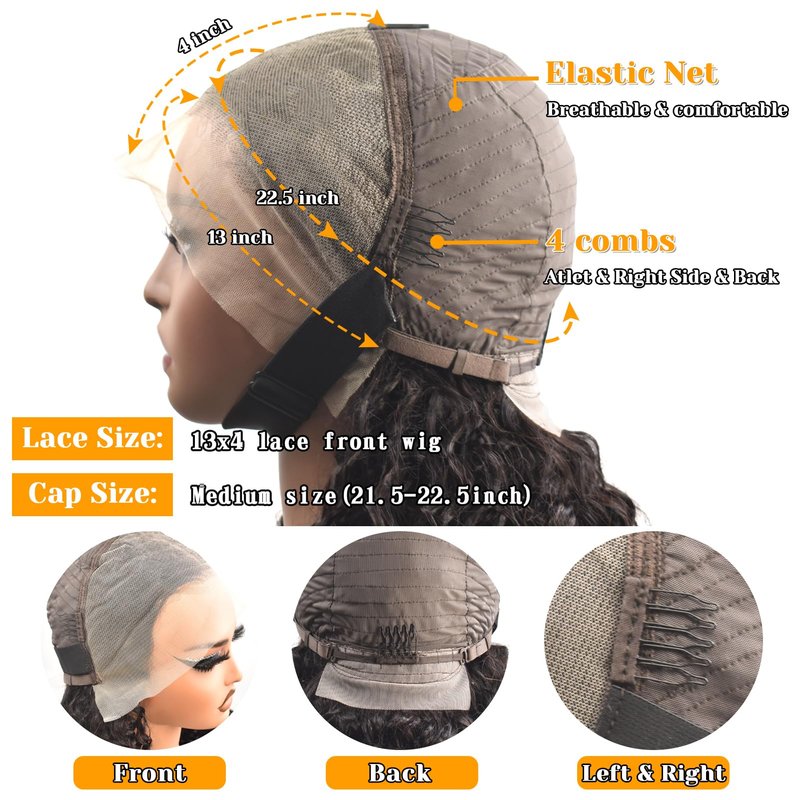 - 【Deep Curly Wig Human Hair Pre Plucked Cap Size】Deep Wave Glueless Wigs Human Hair Pre Plucked, Medium Cap Size(22 inch - 22.5 inch), Fit Most People, With 4 Combs And Two Adjustable Straps Make It Easy To Install, Breathable & Durable Lace Material Make It More Comfortable,You Will Feel Like Your Own Hair.